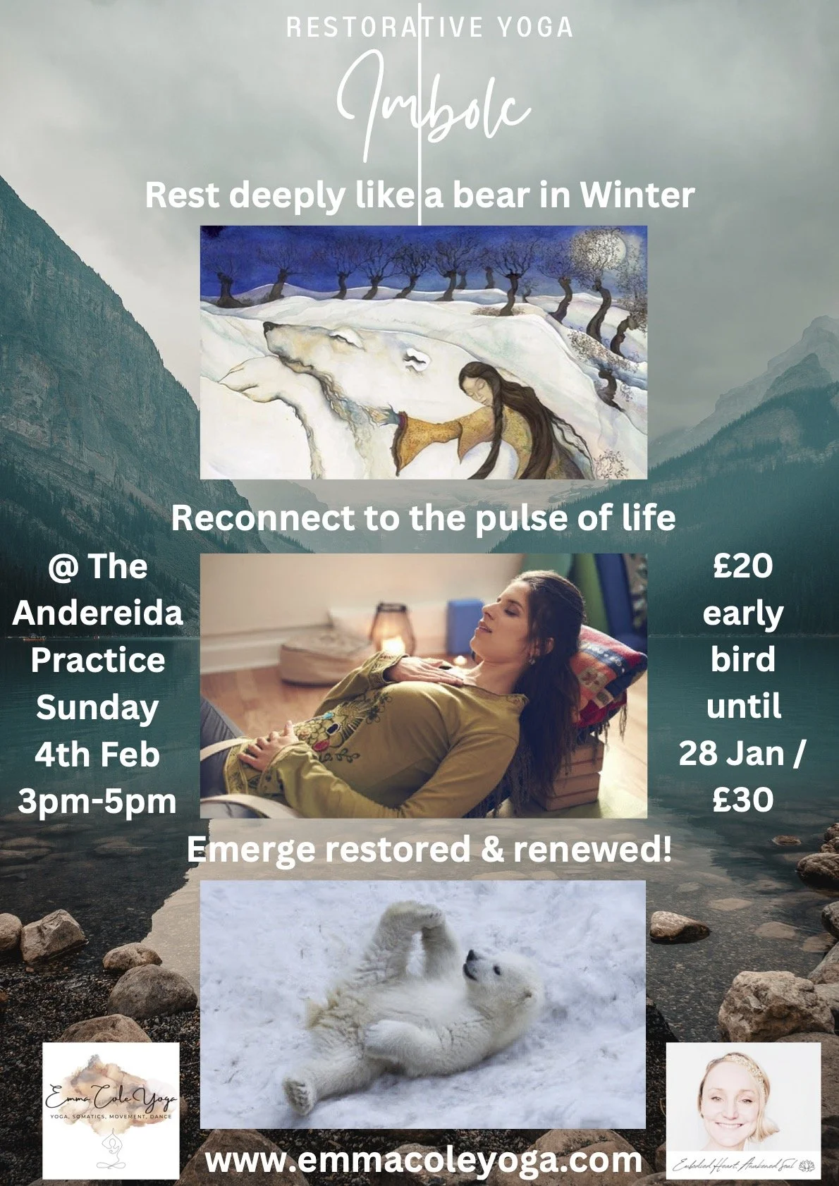 Come rest for long periods of time in relaxing postures supported by props such as bolsters, blankets and eye pillows. No physical effort or exertion is required and the body is made warm and comfortable. Strive no more! These bespoke sessions are nurturing, informative, heart-warming, inspiring and perfect for anyone who is stressed out, burned out, exhausted, grieving, or simply longing for the quiet, gentle conditions that allow for inner space, inner peace and inner calm to emerge