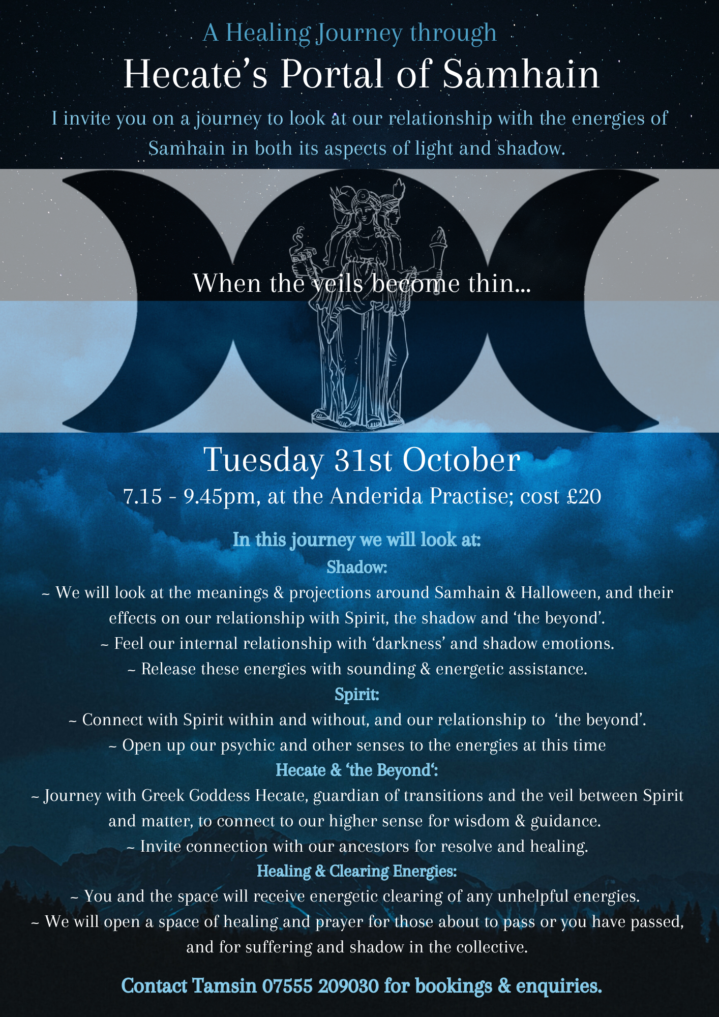 I look forward to to welcoming you on a healing journey on the night of Samhain-Halloween.